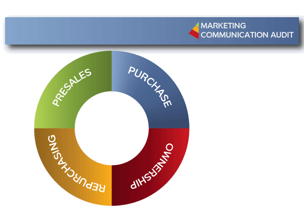 Through the Marketing Communication Audit we follow up on the typical client’s life cycle, from the acquisition phase, through the purchase phase, until the retention or the attrition phase. We survey the whole contact flow, mapping all communication’s elements, including theirs subjects and timing, and provide an improved communication flow for all phases of the sales cycle: